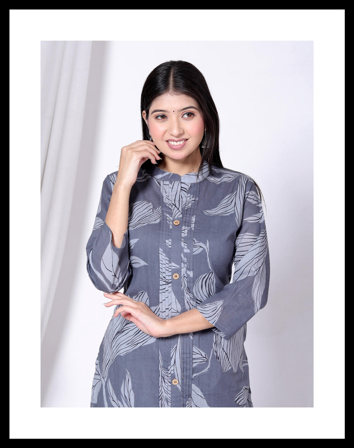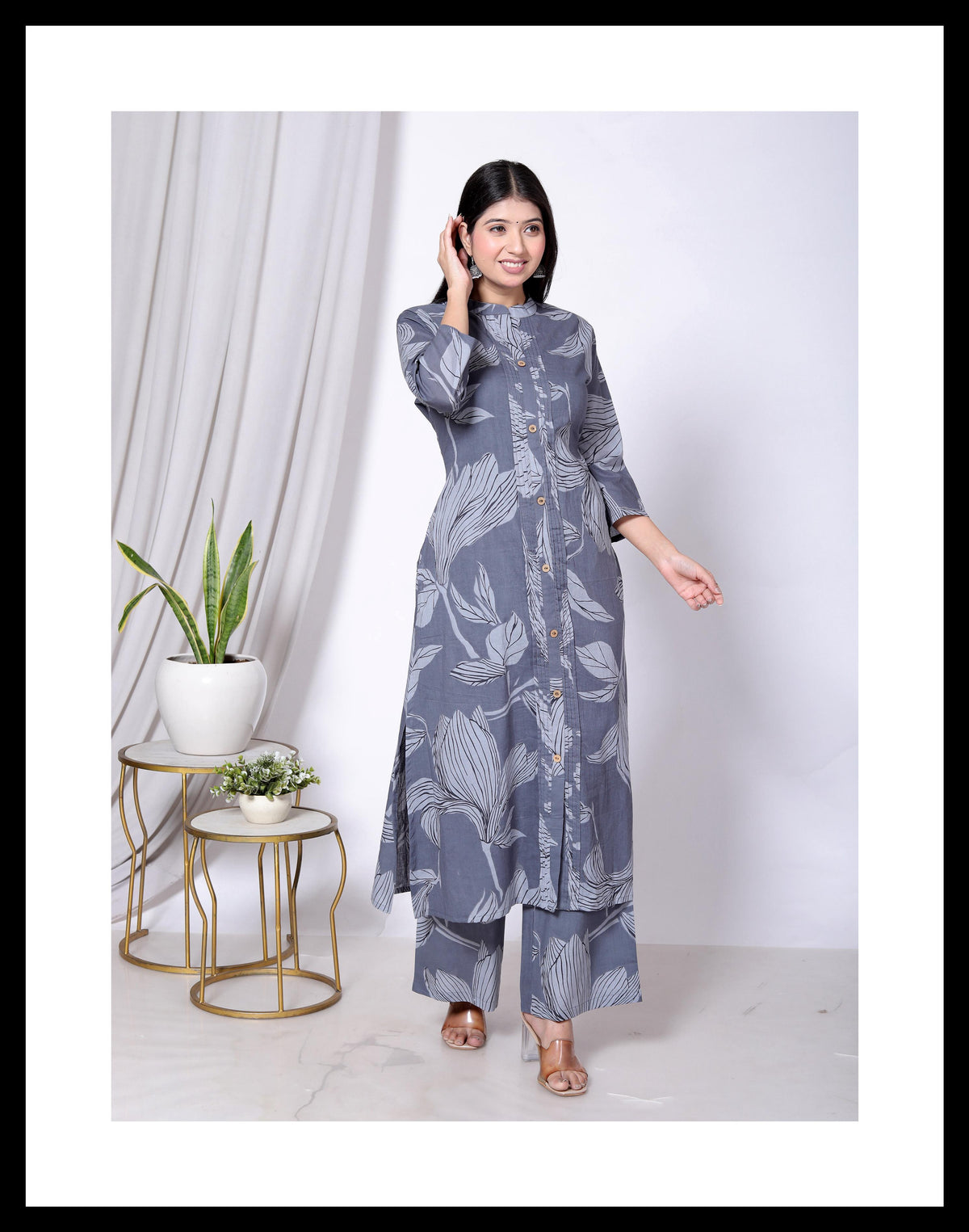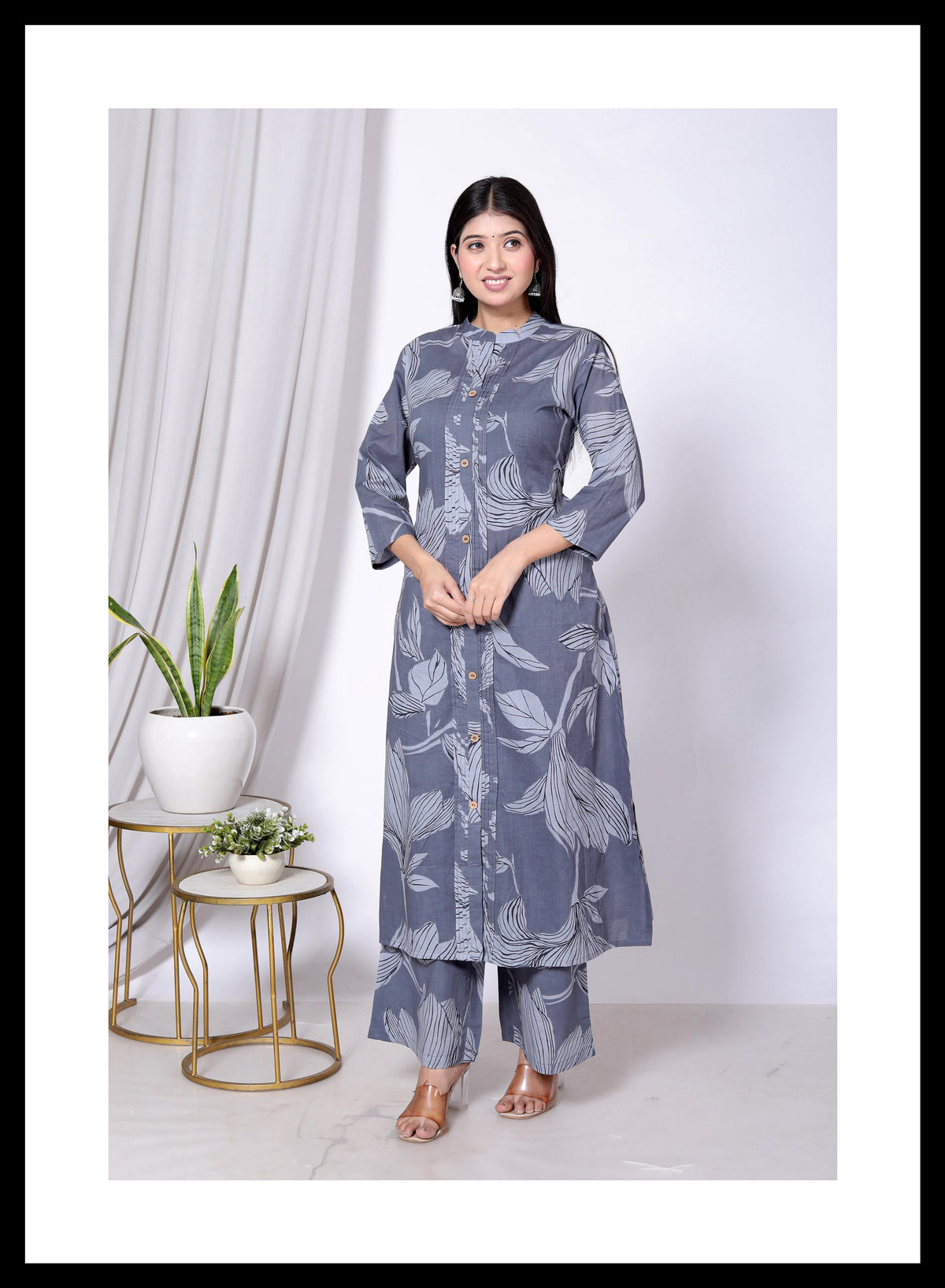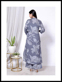 Cotton 2 piece cord set A-line kurti & plazo pant - M / Gray